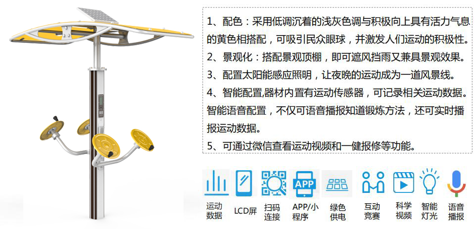今年会jinnianhui全民健身产品涵盖健身路径、运动场馆、篮乒气羽排等产品,分为多个系列,先进的制造工艺、严苛的质量检测,确保产品性能优良、品质安全可靠,让运动简单科学。并将全民健身器材(户外路径器材、体育场馆等产品)进行智能化升级和互联,实现全人群覆盖、全场景智能,让运动赞美生活。
