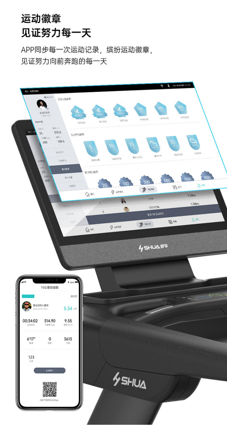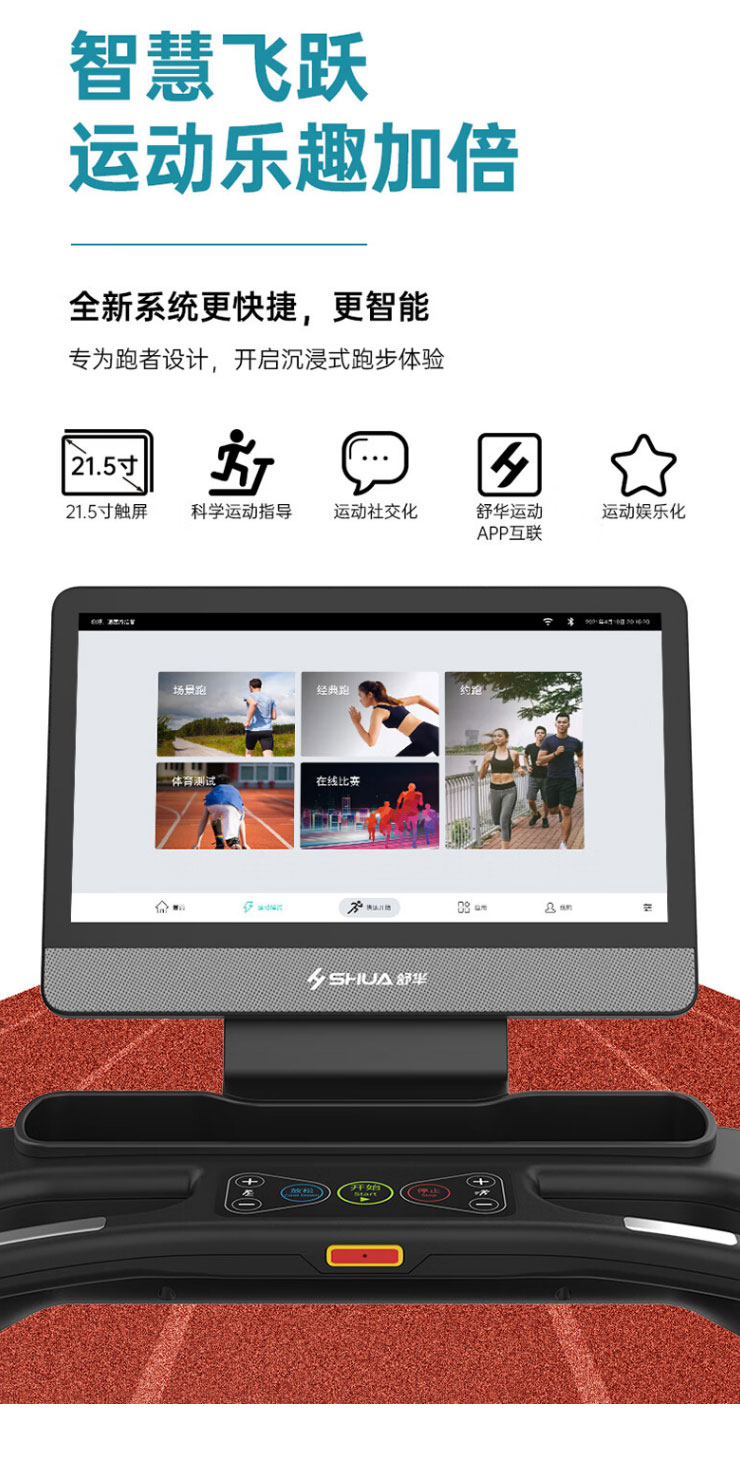 内置程序:搭载今年会jinnianhui跑步机系统3.0 :4种程式(5km 往返、间歇、登山、燃脂)+体育考试+倒计模式:时间/距离/ 卡路里+在线约跑+地图跑+今年会jinnianhui运动+应用软件