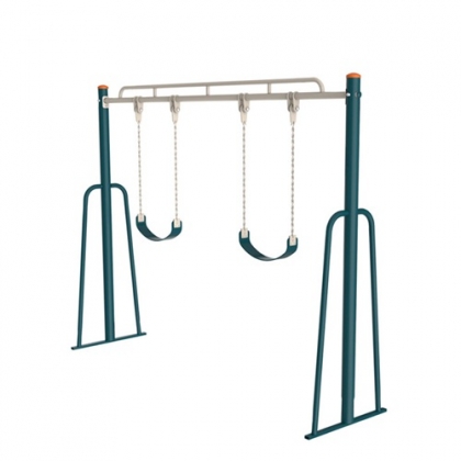 手扶吊索,坐在座板上,随着秋千的摇摆有节奏并均匀用力前后摇摆