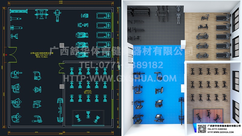 此方案要求面积小于300m²,适用于企事业单位、酒店会所、楼盘社区、俱乐部、学校等健身场所,能满50-60人同时健身使用。(方案根据场地空间大小、预算、产品需求等进行配置仅为启发性参考)
