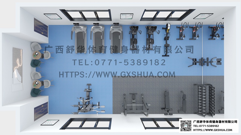此方案要求面积小于89m²,适用于企事业单位、酒店会所、楼盘社区、工作室、学校等健身场所,能满15-20人同时健身使用。(方案根据场地空间大小、预算、产品需求等进行配置仅为启发性参考)